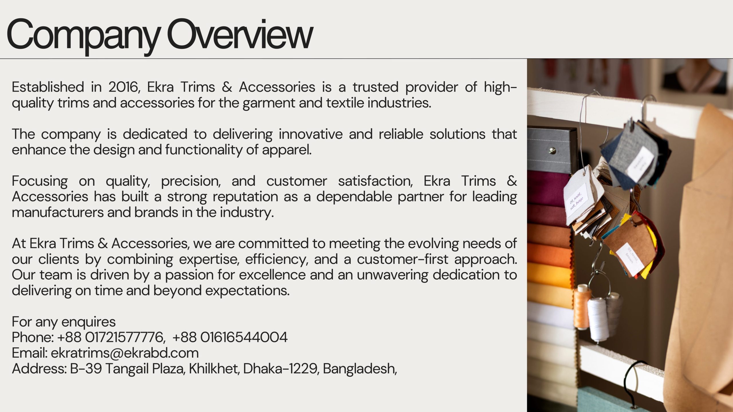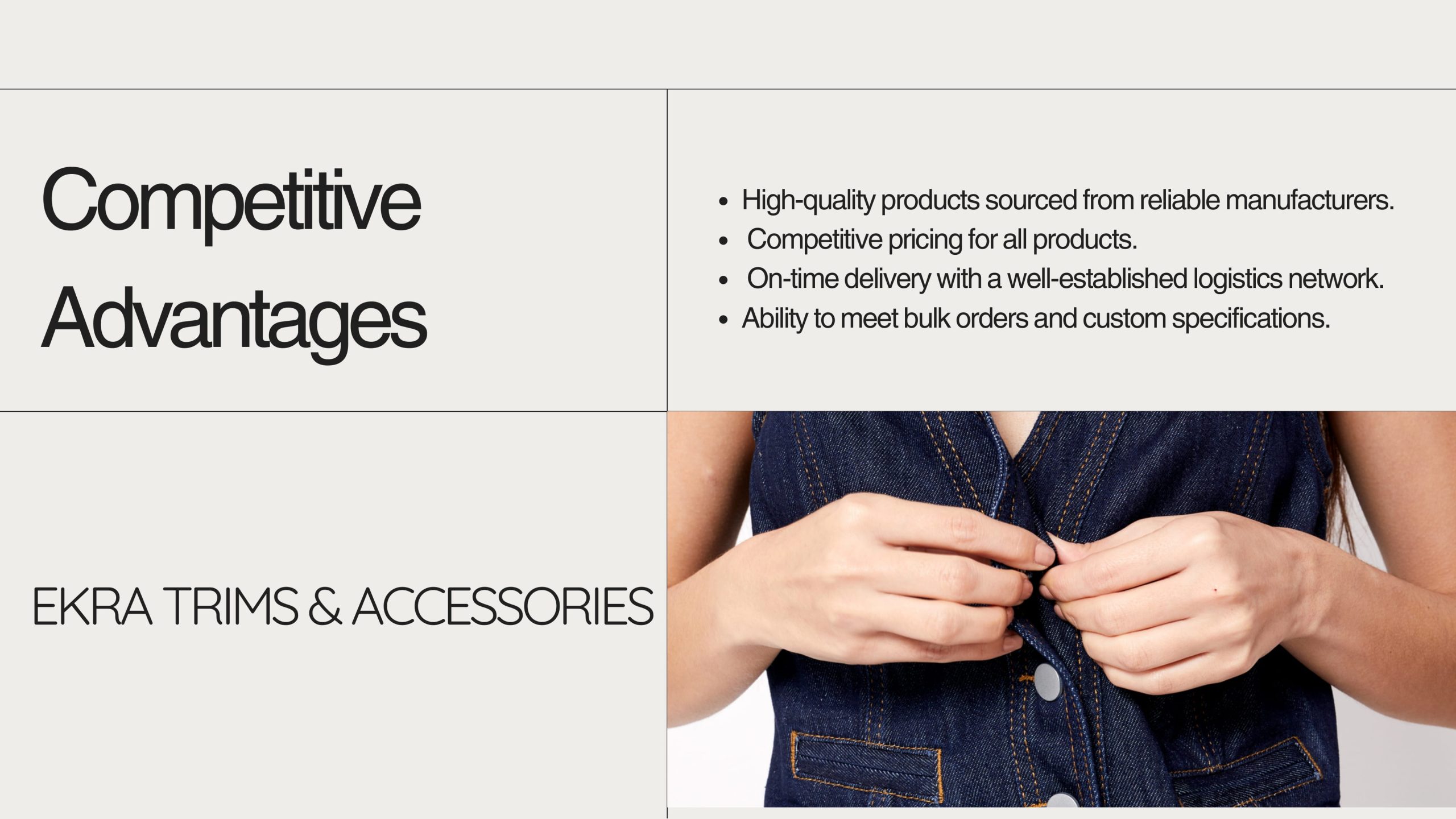 Our strength lies in a skilled team, a trusted global network, and reliable service. With deep expertise in sourcing and quality control, we ensure top-tier products delivered on time. Our close tracking of global fashion trends lets us respond quickly and accurately to market demands.